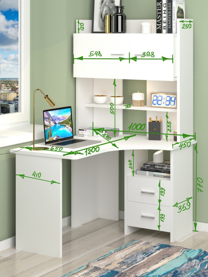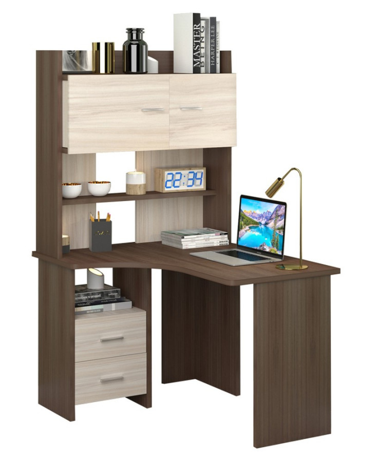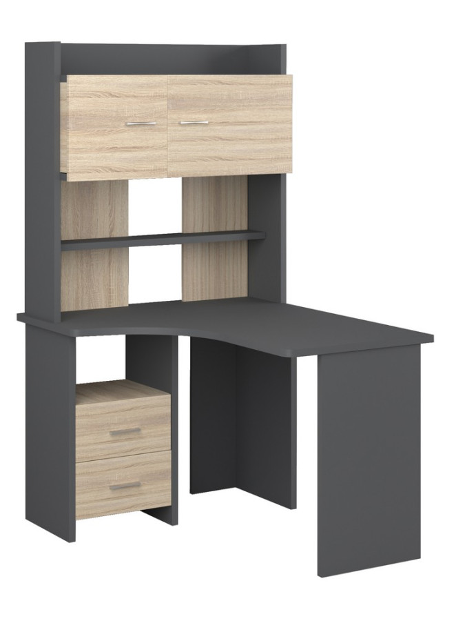 Особенностью этого стола является его надстройка, которая позволяет хранить все необходимые вещи в одном месте. Также он имеет четыре полки и два ящика для дополнительного хранения документов и других предметов.