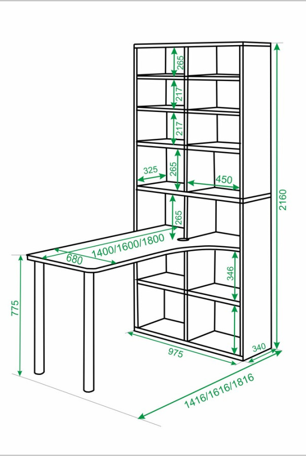 Размер: 975Ш х 340Г х 2160В