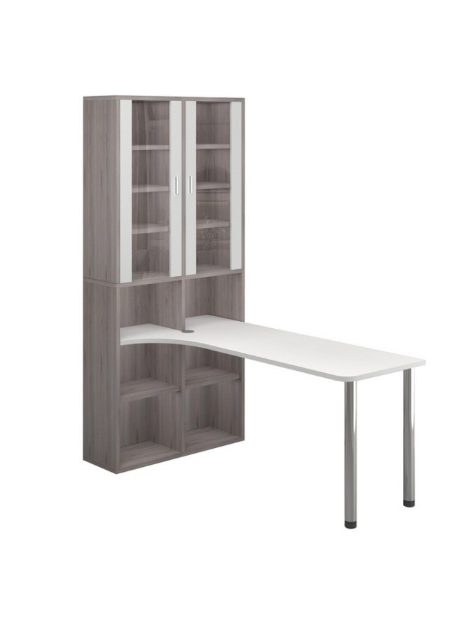 Просторный угловой стол идеально впишется в домашний кабинет, офис или рабочую зону на даче. Прочный каркас из ЛДСП и металлические элементы обеспечивают долговечность конструкции. Столешница и основные элементы корпуса толщиной 25 мм сохраняют эстетичный вид даже при интенсивном использовании.