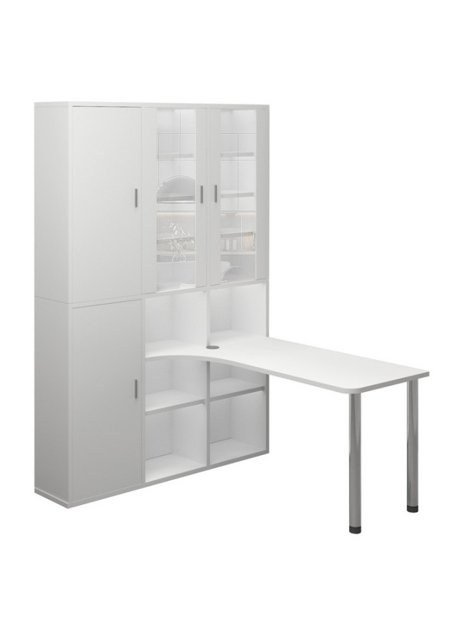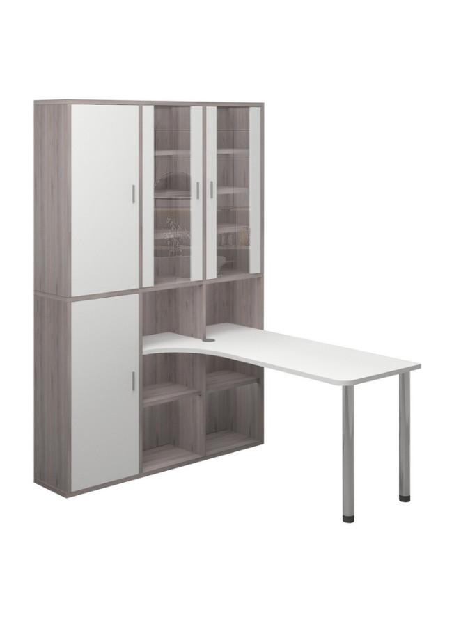 Просторный угловой стол идеально впишется в домашний кабинет, офис или рабочую зону на даче. Прочный каркас из ЛДСП и металлические элементы обеспечивают долговечность конструкции. Столешница и основные элементы корпуса толщиной 25 мм сохраняют эстетичный вид даже при интенсивном использовании.