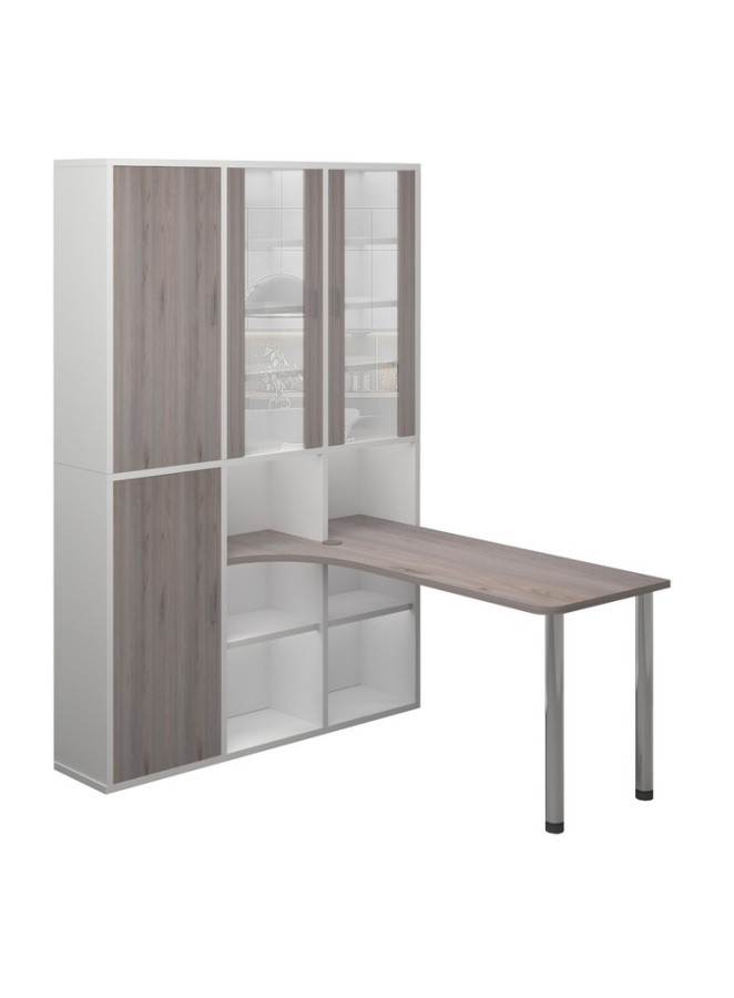 Современный дизайн в стиле модерн дополняет практичная компоновка: удобное расположение полок и ярусов оптимизирует пространство.